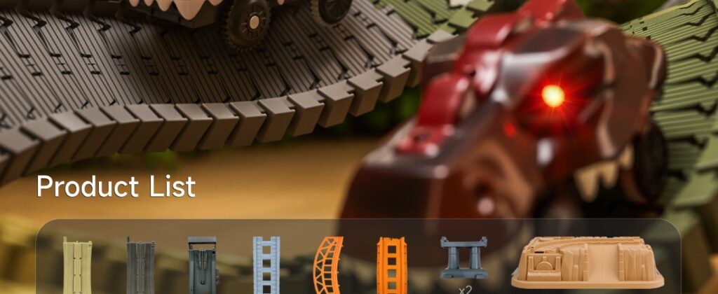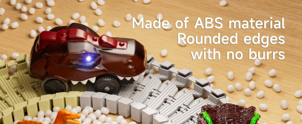 - Includes: 255 pcs (track pieces, 2 light-up dino cars, 4 dinosaur figures, palm trees, windmill, etc.)