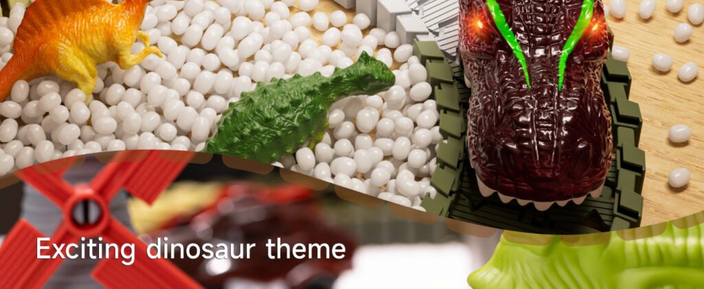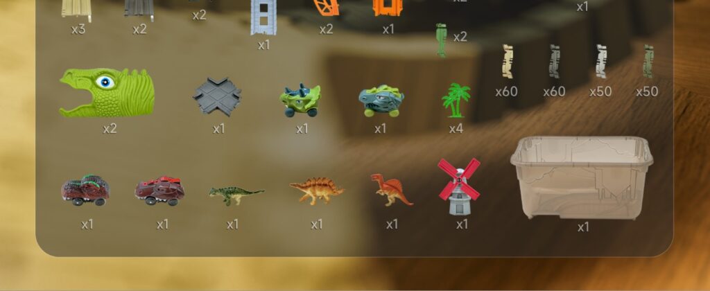 provided hours of entertainment. I’m pleased with this choice. It’s a fantastic set that combines creativity, fun, and education, making it a great gift for children interested in dinosaurs and racing.