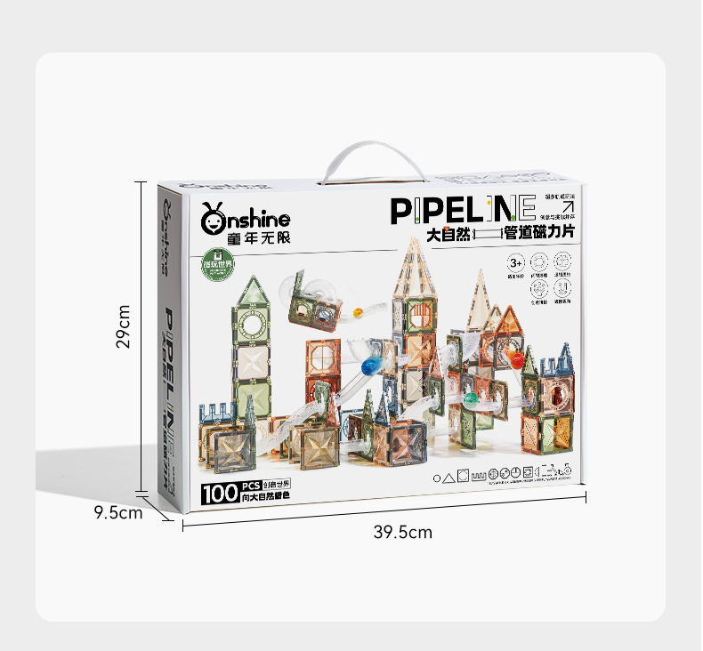 Pipes Magnetic Tiles – Natural Color (100 PCS)