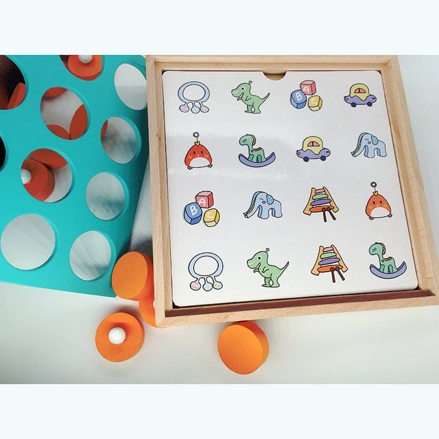 The memory chess is a didactic game that stimulates memory and cognitive development. Package Includes 1 * chessboard,16 * chess pieces,6 * card (double sided)